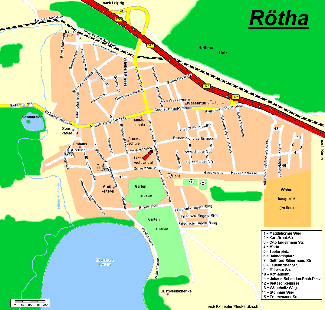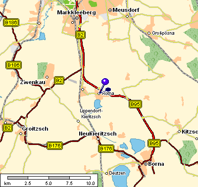 Rötha ist ein kleines Städtchen mit ca. 4000 Einwohnern, was sich ca. 20 km südlich von Leipzig an der B95 befindet.
